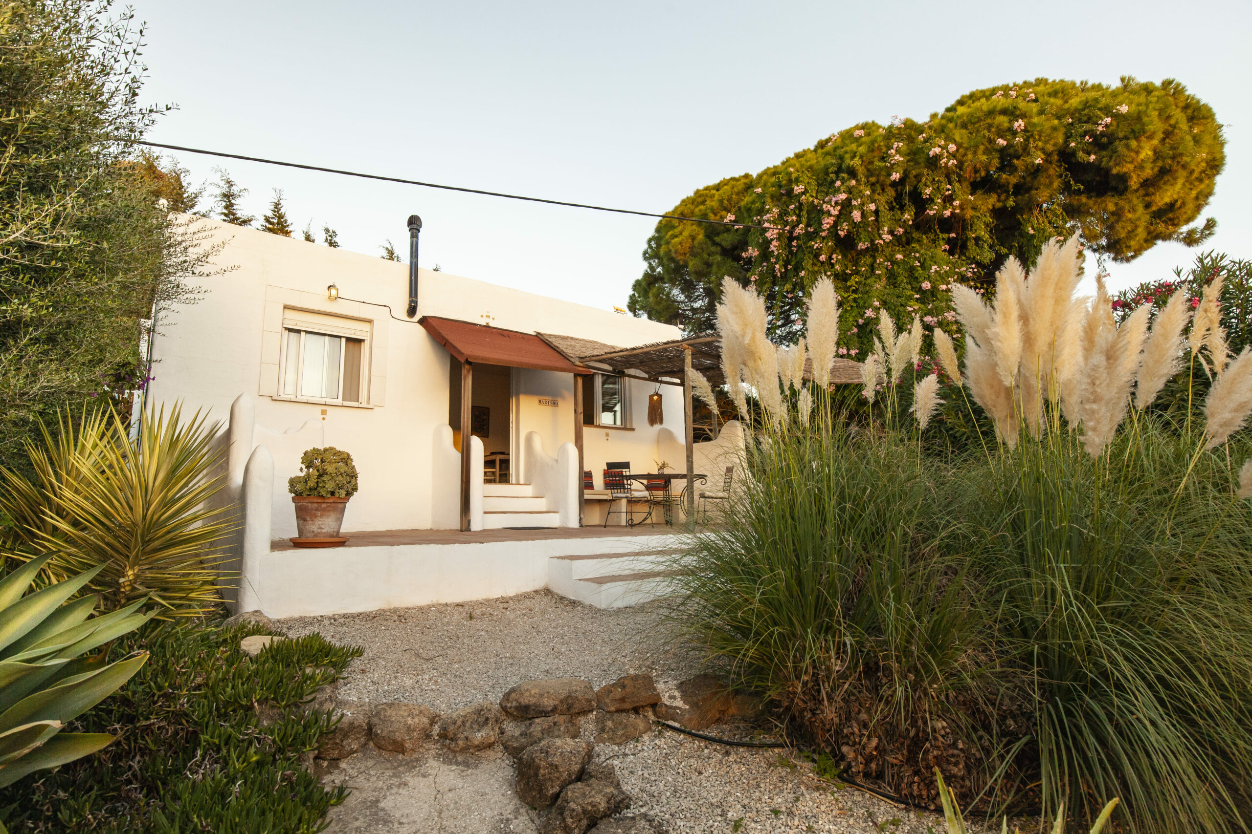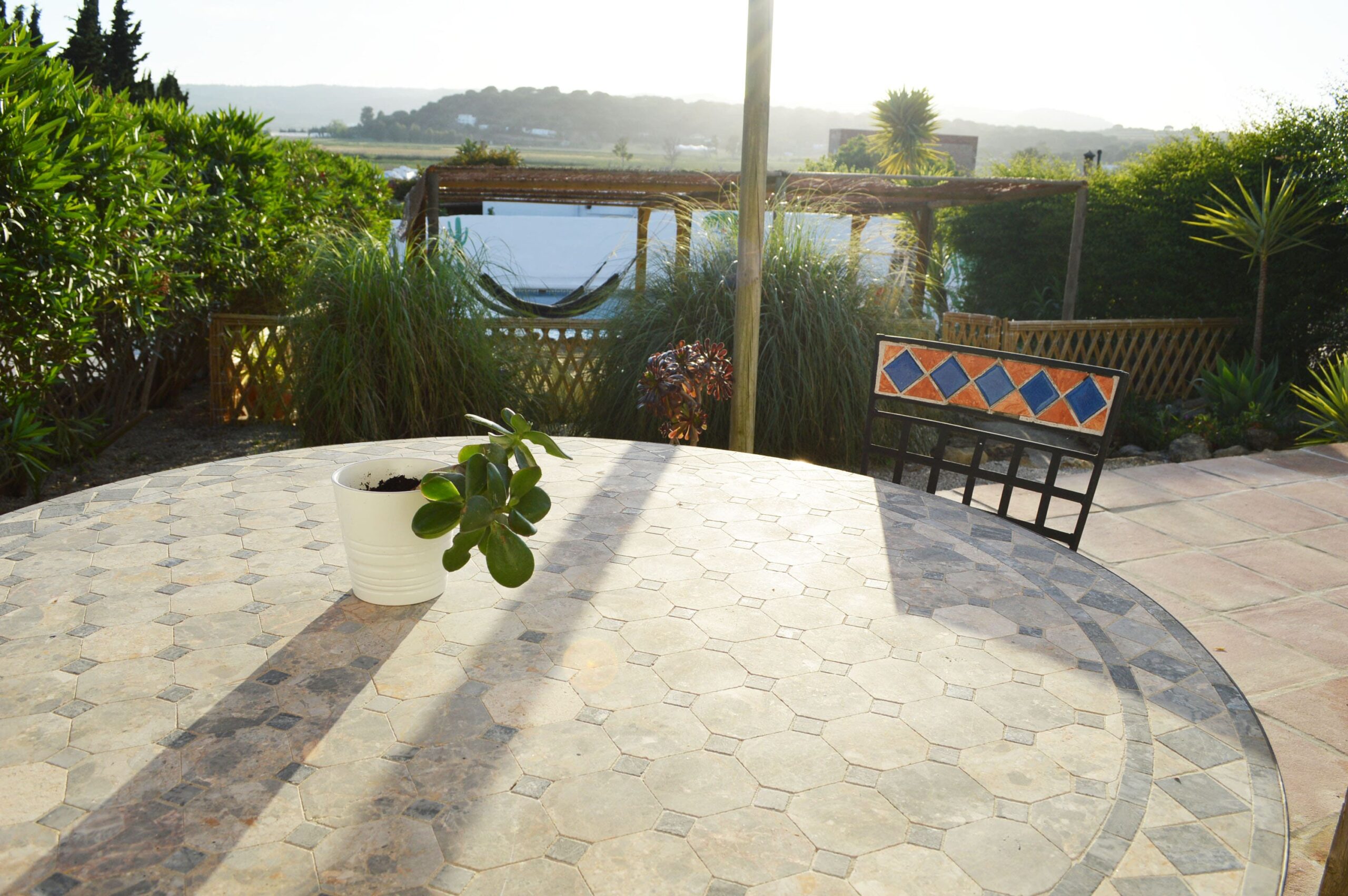 La terraza con barbacoa tiene acceso directo a la piscina y zona chillout con magnificas vistas a Vejer y a la puesta de sol.