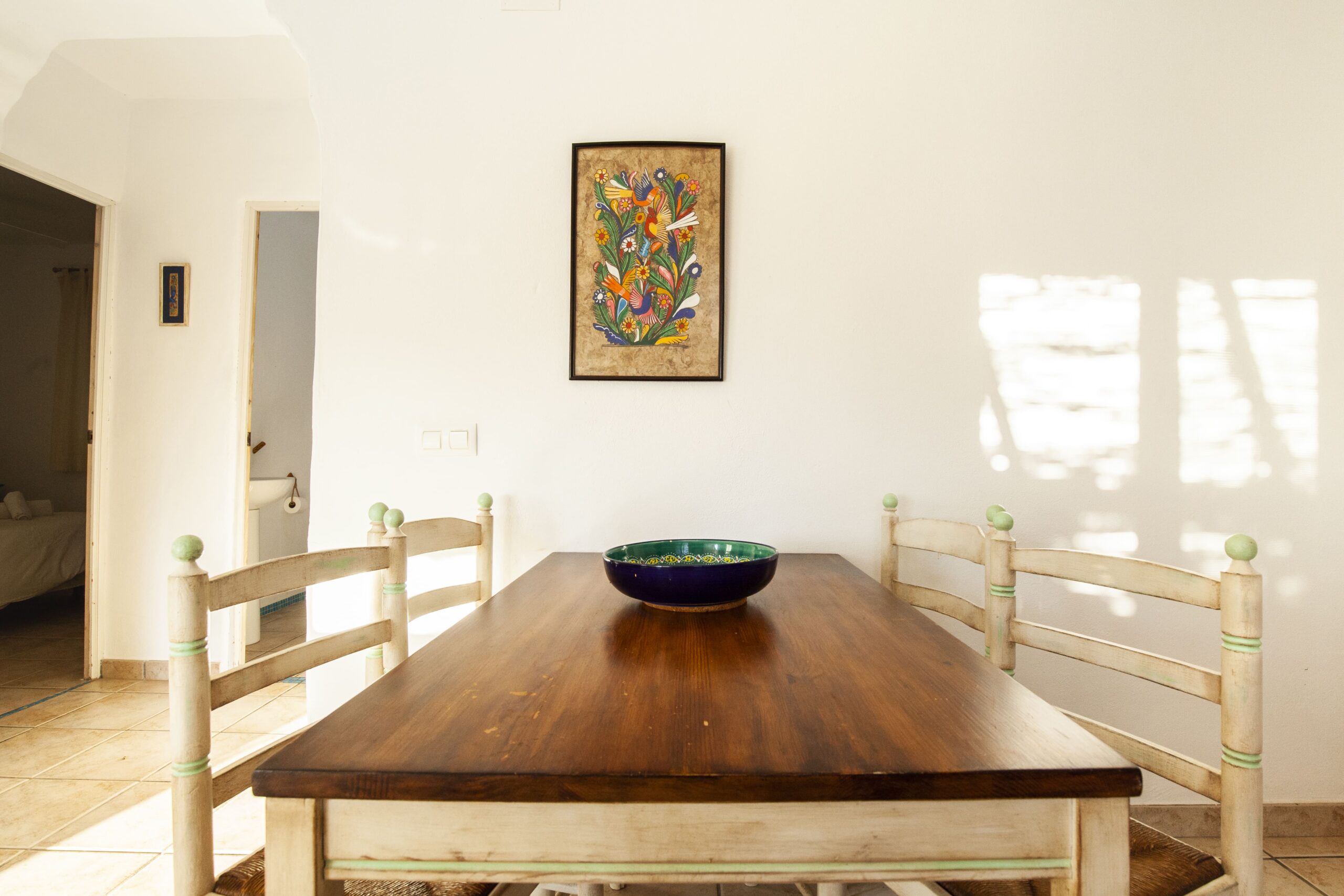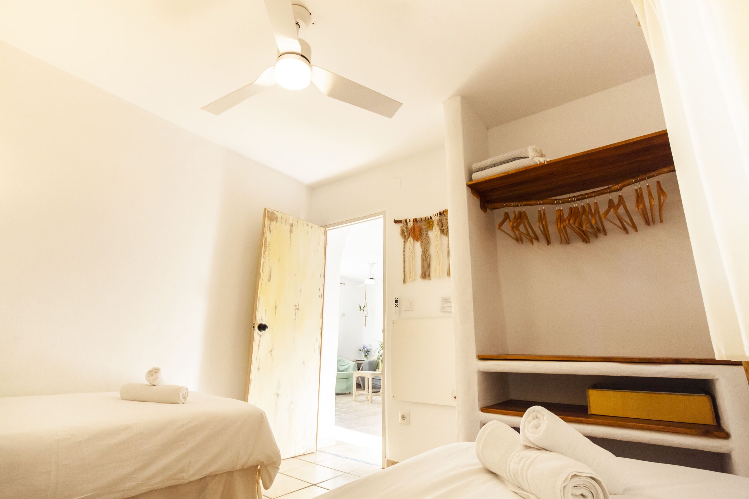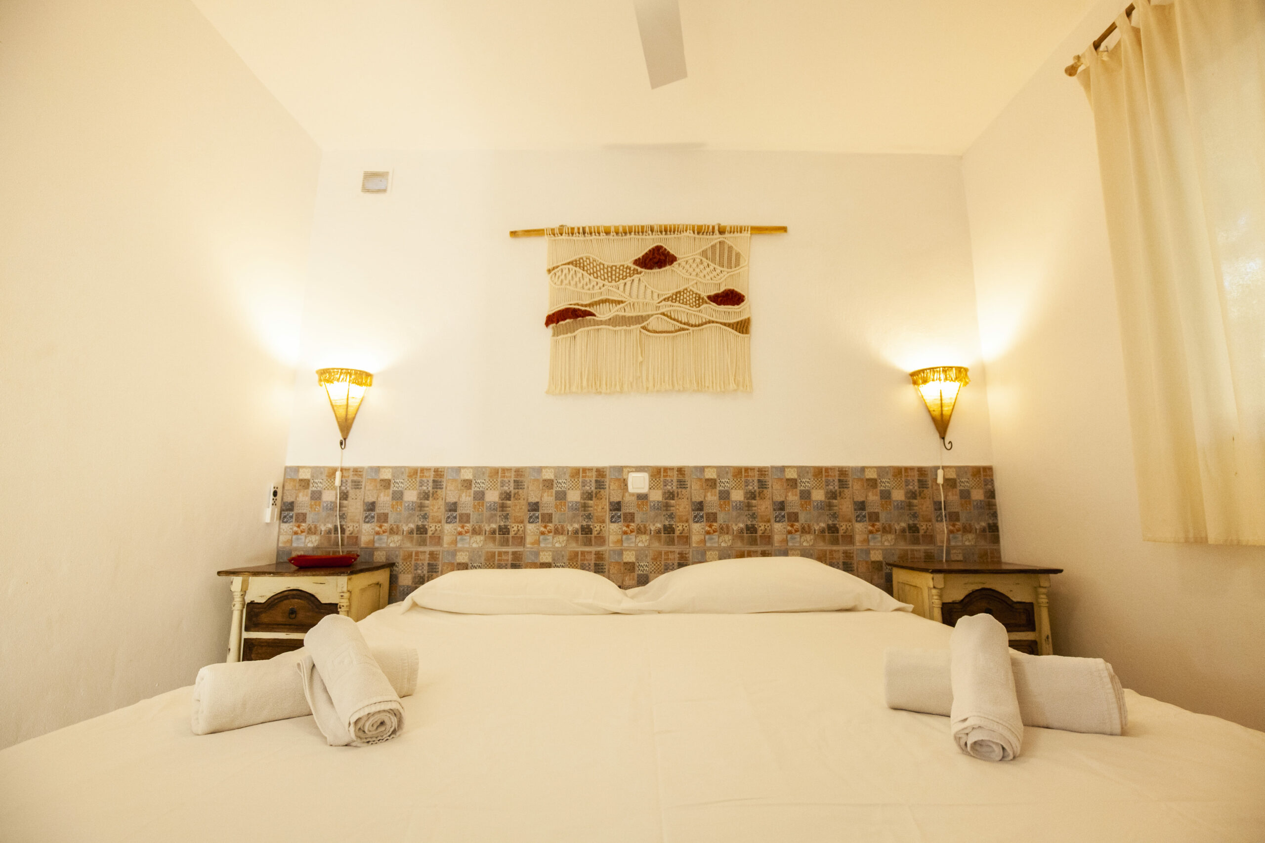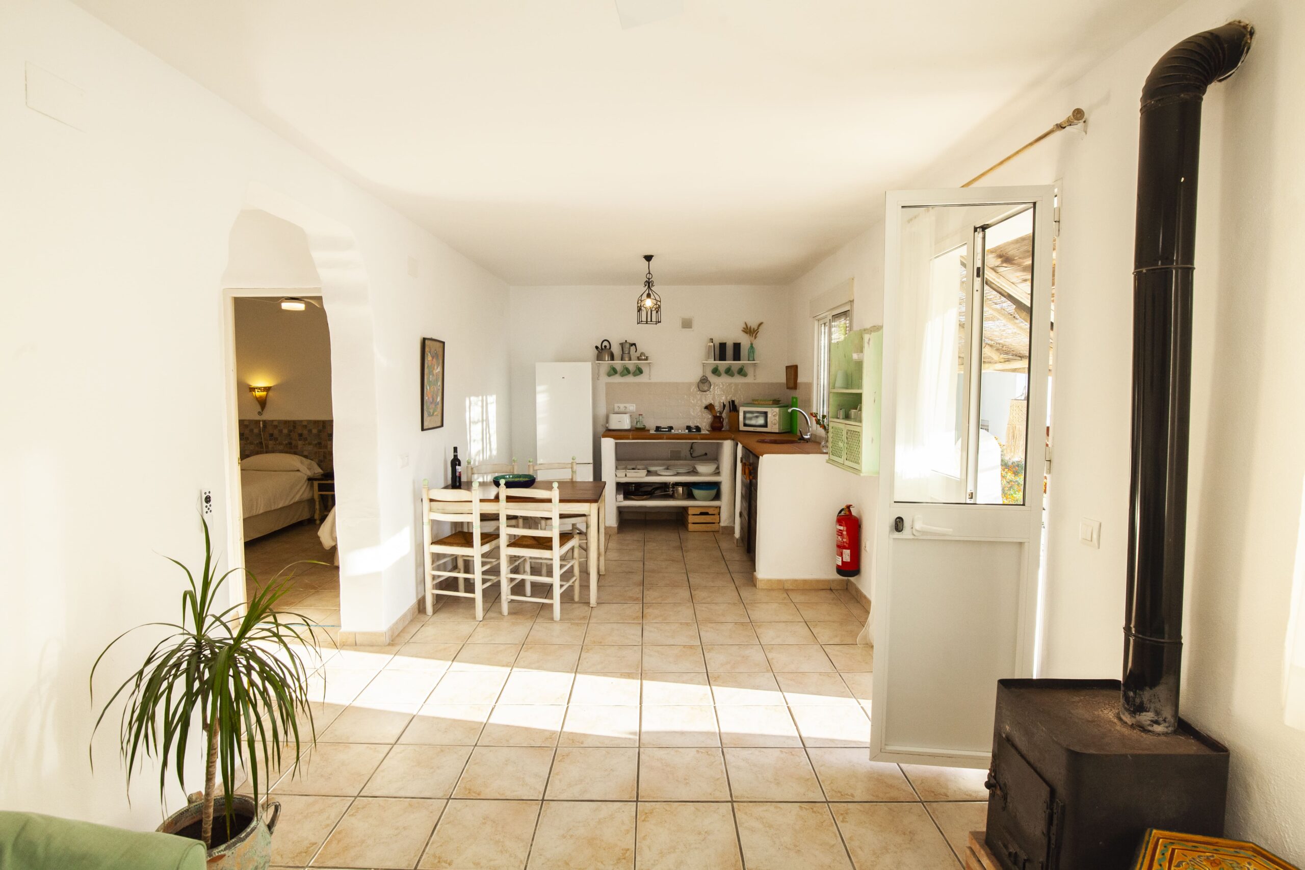 Es una coqueta casita independiente de dos dormitorios, uno con cama matrimonial de 180cm x 190cm y otro con dos camas individuales, acomodando a un máximo de 4 personas.