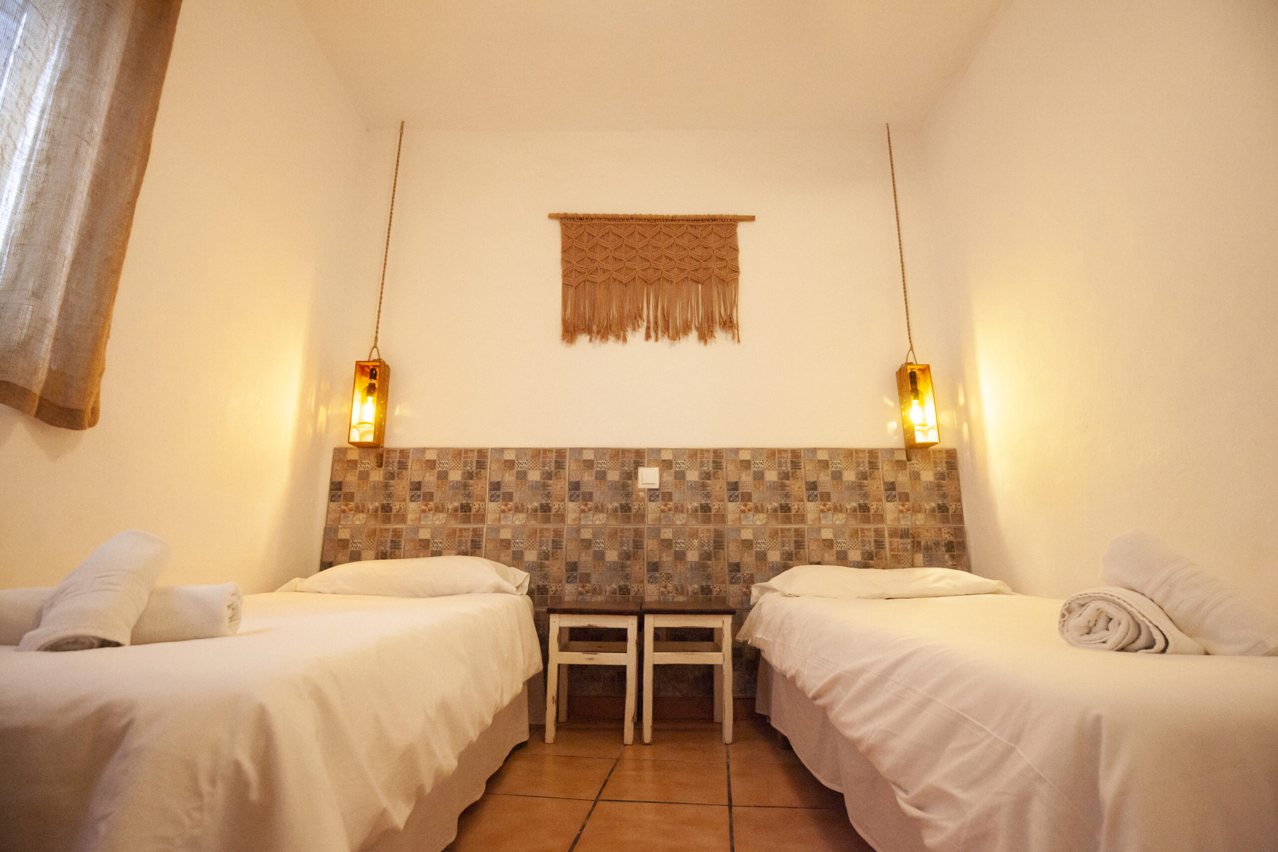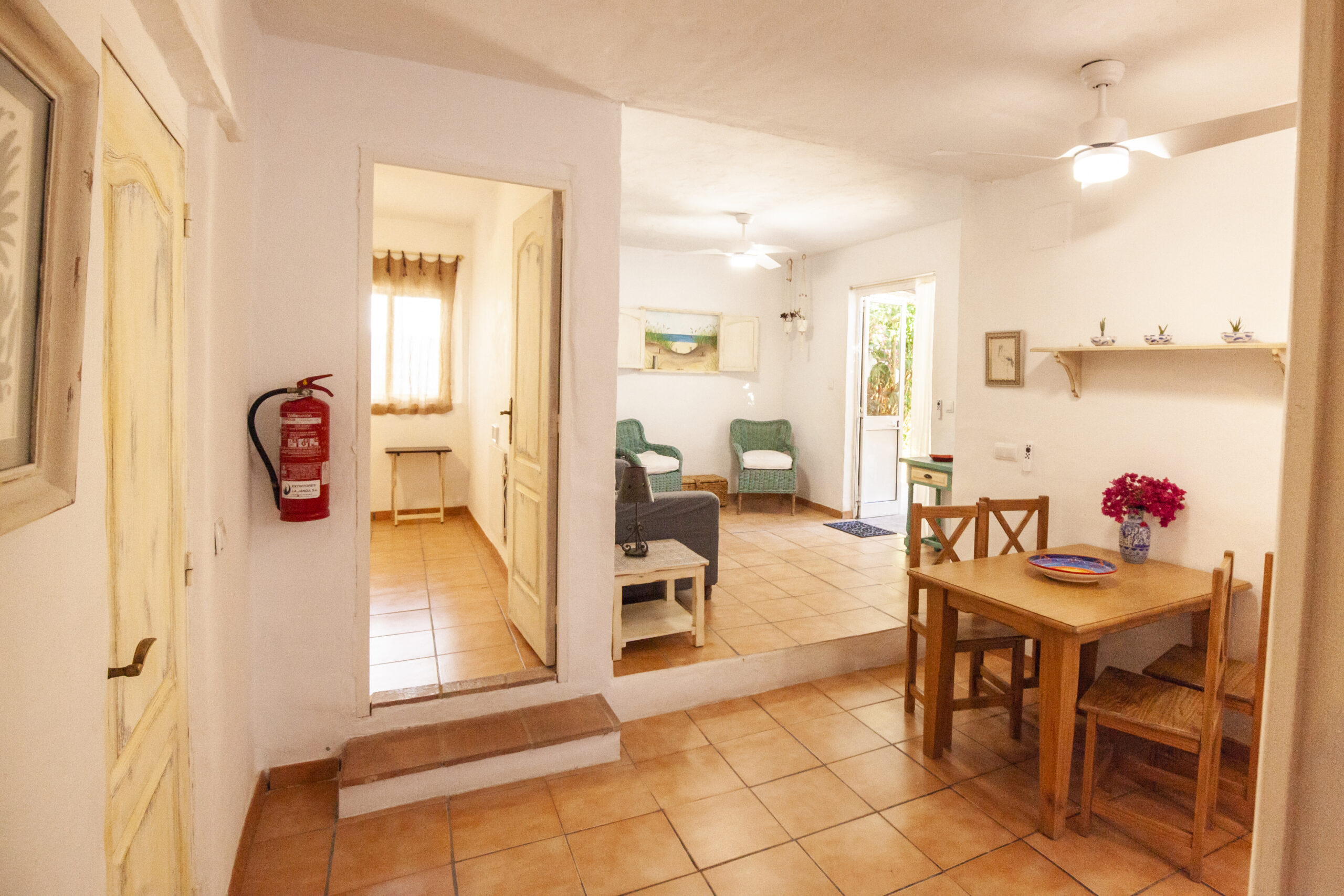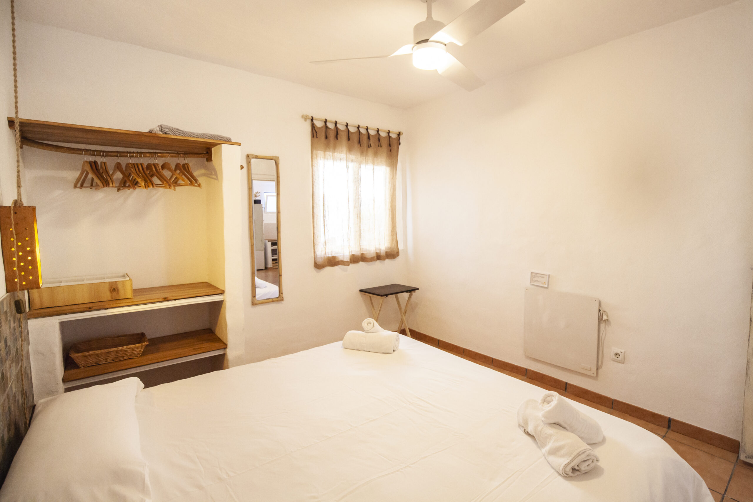 Es una coqueta casita independiente de dos dormitorios, uno con cama matrimonial de 180cm x 190cm y otro con dos camas individuales, acomodando a un máximo de 4 personas.