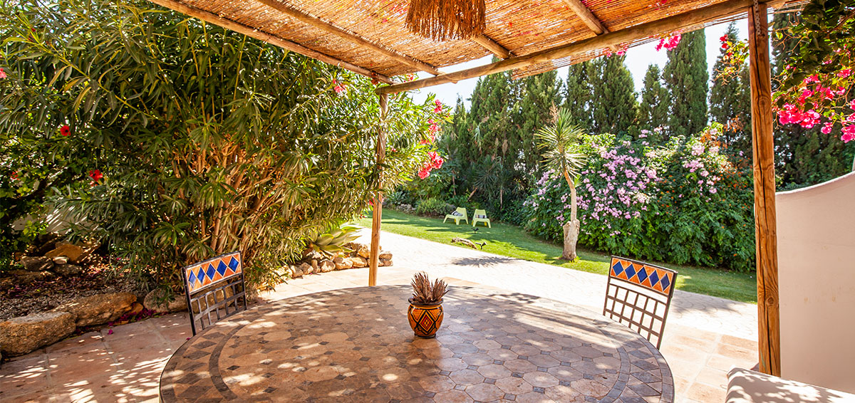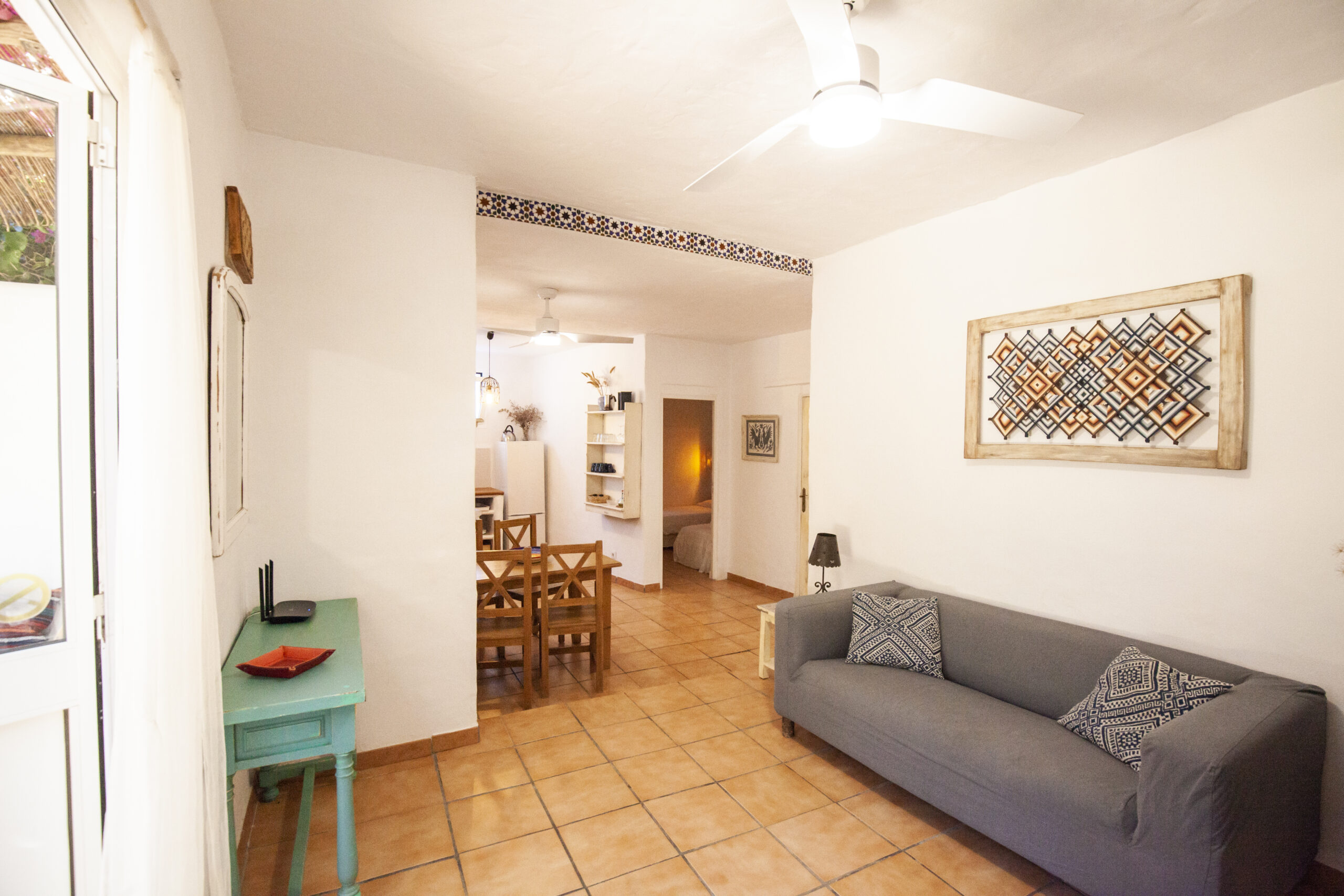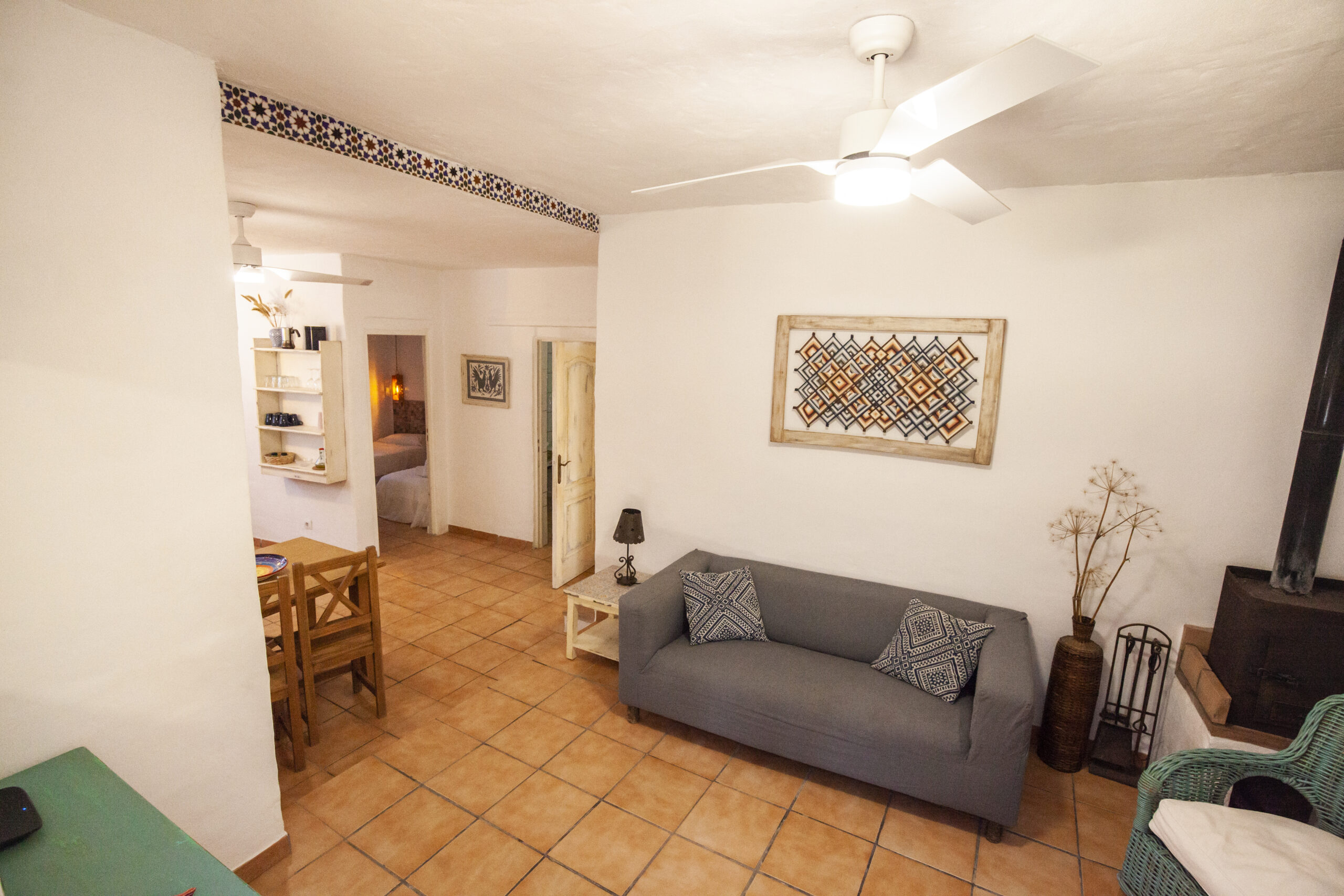 Es una coqueta casita independiente de dos dormitorios, uno con cama matrimonial de 180cm x 190cm y otro con dos camas individuales, acomodando a un máximo de 4 personas.