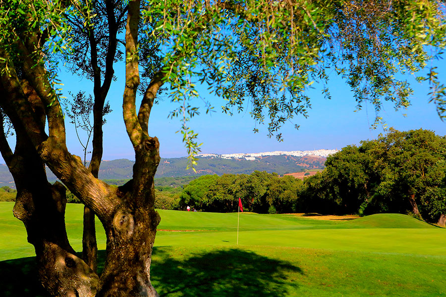 18 hoyos con un entorno natural único. Vistas a los pueblos blancos de Vejer, Medina y Benalup.
